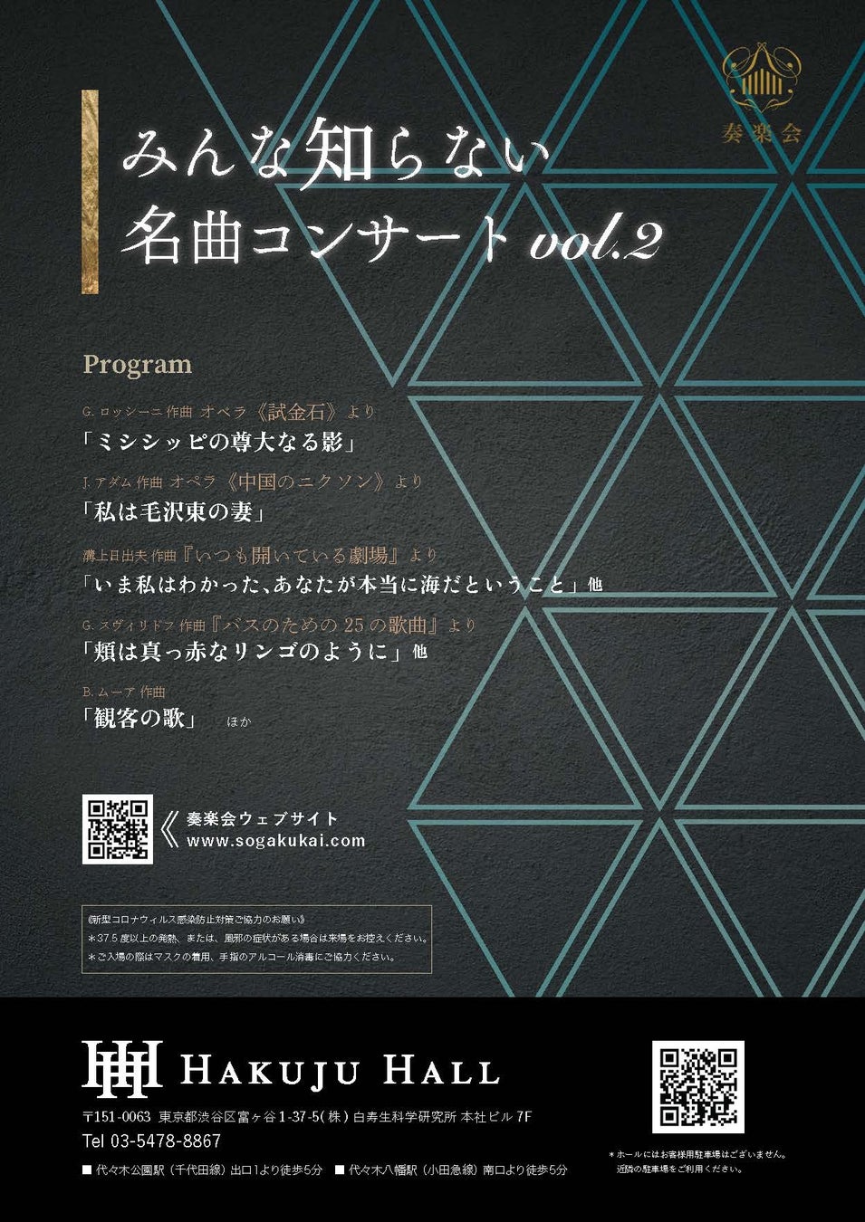 会場:Hakuju Hall(東京都渋谷区富ヶ谷1-37-5(株)白寿生科学研究所本社ビル 7F)