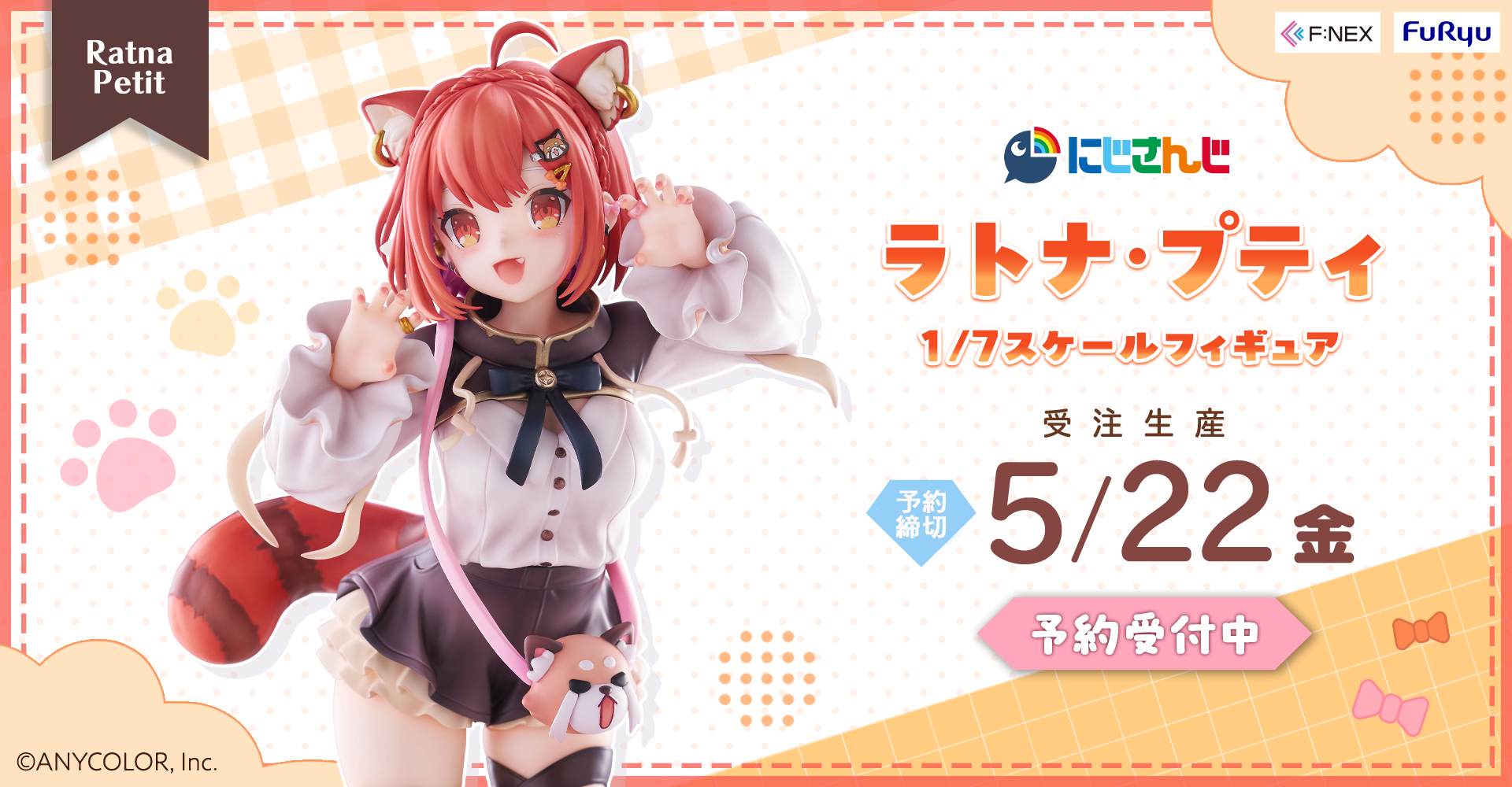 フリュー株式会社(本社:東京都渋谷区、代表取締役社長:榎本雅仁、以下フリュー)は、高品質ホビーブランド『F:NEX(フェネクス)』にて大人気バーチャルライバーグループ「にじさんじ」より『ラトナ・プティ 1/7スケールフィギュア』の発売を決定いたしました。本日4月10日(金)から、フリューが運営するホビーECサイト『FURYU HOBBY MALL』(URL:https://furyu-hm.com/)にて予約を開始いたします。