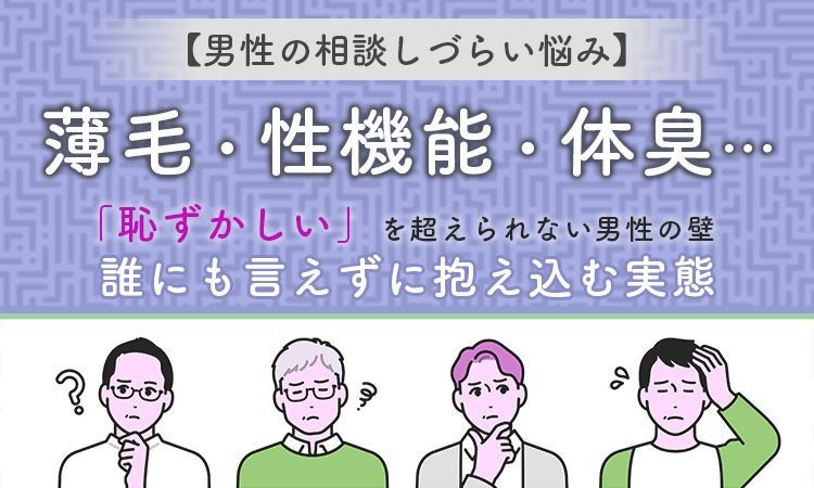 【男性の相談しづらい悩み】薄毛・性機能・体臭…「恥ずかしい」 を超えられない男性の壁 。誰にも言えずに抱え込む実態