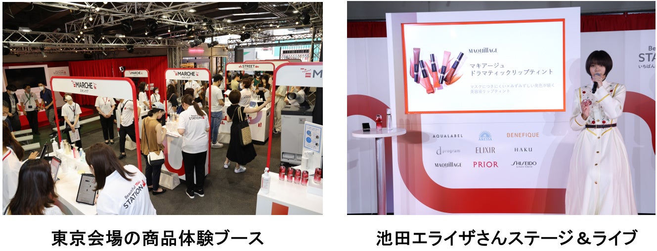 創業150周年を迎えた資生堂は、スペシャルイベント「Beautiful me STATION ~いちばん好きな私をみつける場所~」を、2022年7月に全国7都市で展開します。まず7月9日(土)、10日(日)に東京、埼玉で開催され、資生堂のさまざまなブランドからパーソナライズ美容提案を行う商品体験ブースは訪れた参加者で賑わいました。東京会場では、女優の池田エライザさんが資生堂150周年記念企業TVCMで着用している衣装で登場、“いちばん好きな私”をテーマとするトークで会場を沸かせました。