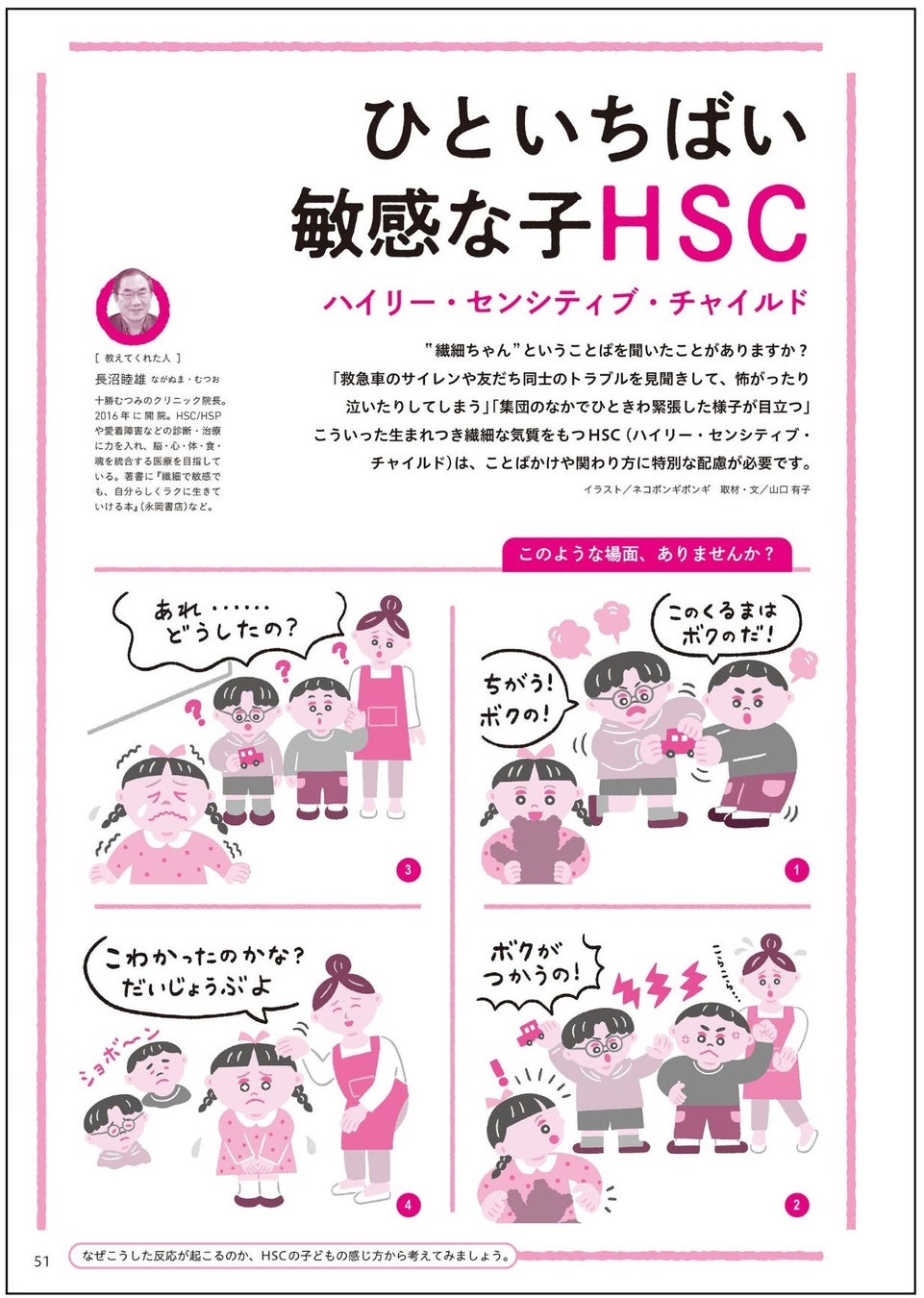 「救急車のサイレンや友だち同士のトラブルを見聞きして怖がる」「集団のなかでひときわ緊張している」など生まれつき繊細な気質をもつHSC(ハイリー・センシティブ・チャイルド)。