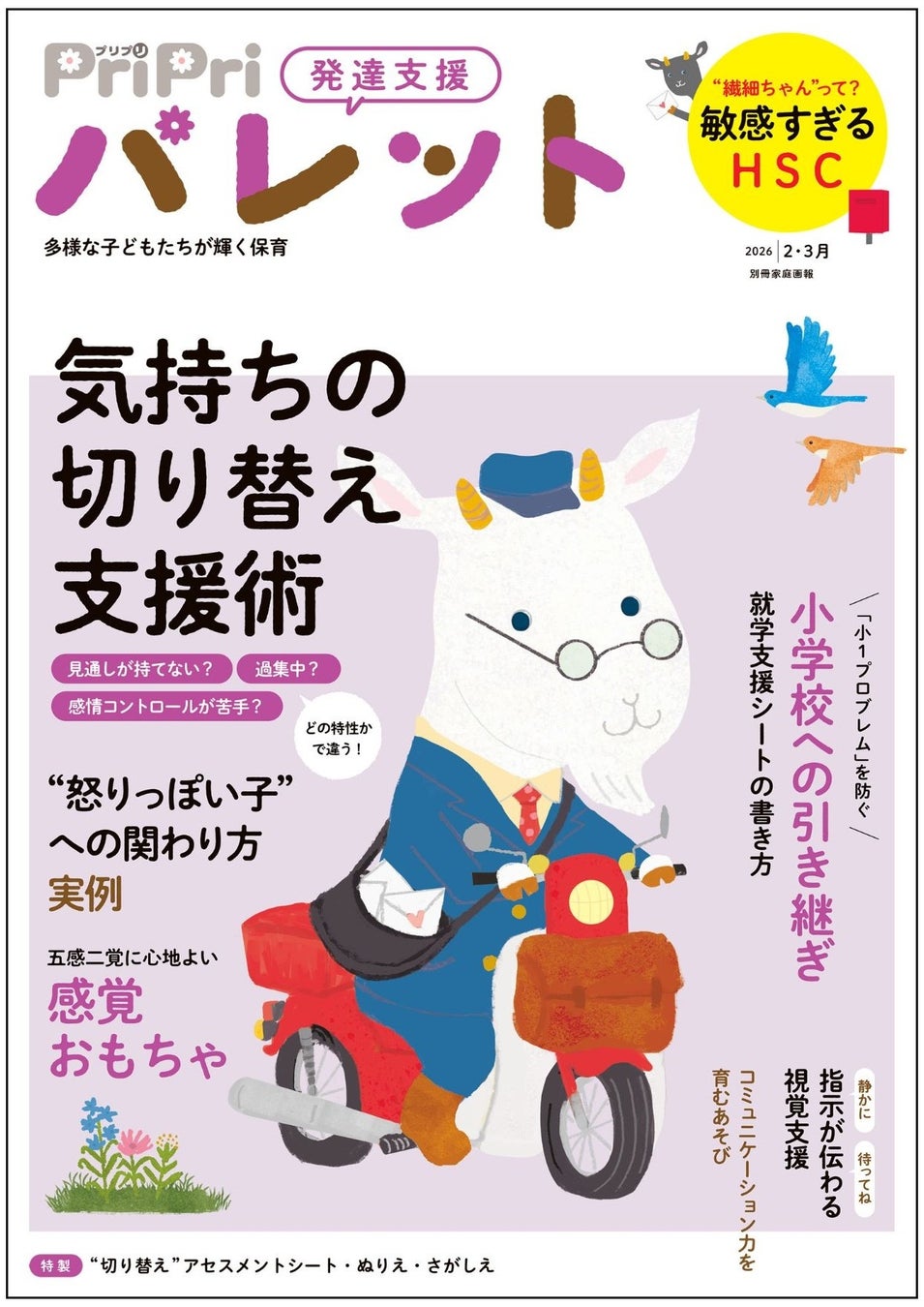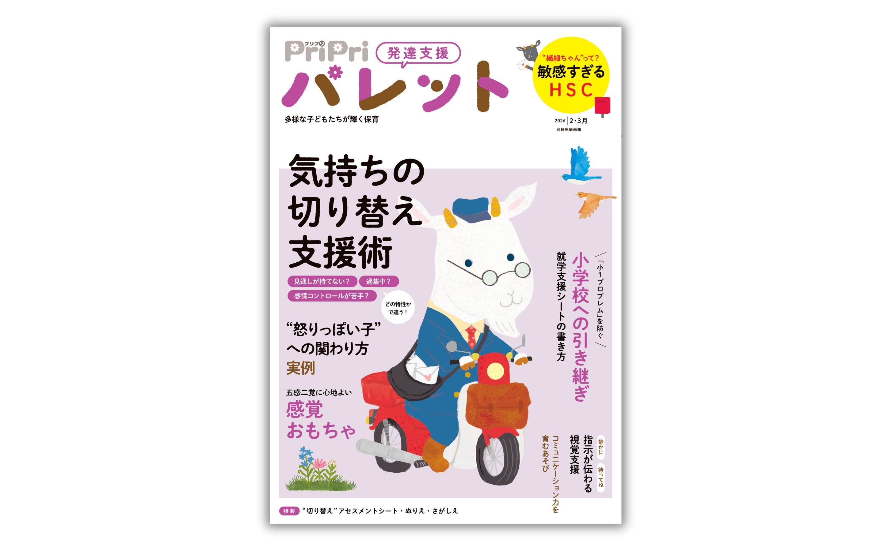 12月22日(月)発売の『PriPriパレット2・3月号』では、気持ちの切り替えが苦手な子への対応を大特集! そのほか、小学校へ子どもの育ちを引き継ぐポイント、ひといちばい敏感な子「HSC」への理解と関わり方についても取り上げます。