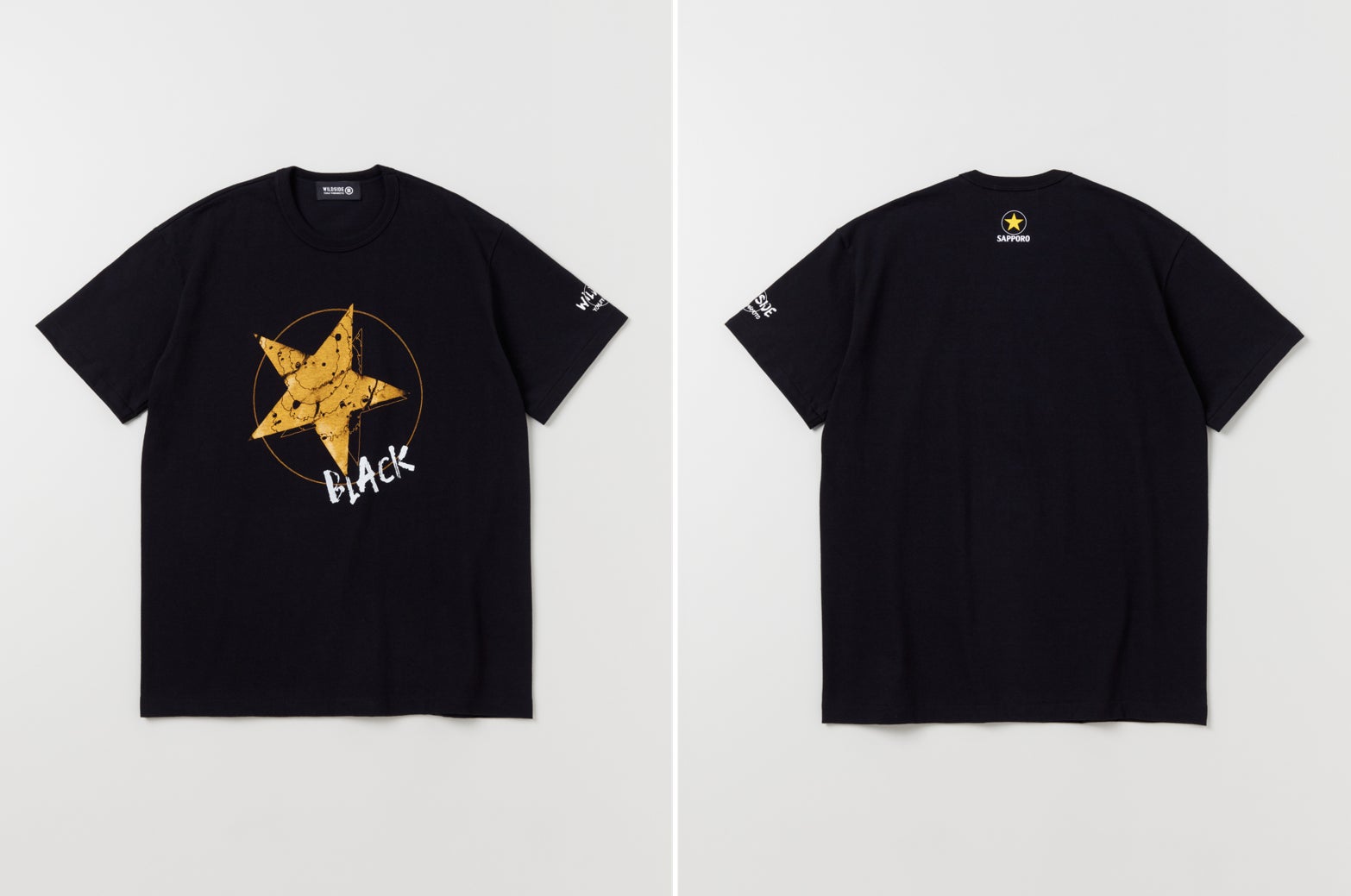 WILDSIDE YOHJI YAMAMOTOを象徴する黒のコンセプトカラーと、サッポロ生ビール黒ラベルの持つ世界観や「丸くなるな、☆星になれ。」というブランドメッセージへの共感により今回のコラボレーションが実現しました。Tシャツのデザインは、ビールの泡をモチーフとしながら「丸くなるな、☆星になれ。」というメッセージをWILDSIDEのエッセンスを落とし込んで表現した全4種の展開となっています。WILDSIDEはファッションを中心とした、異業種との幅広いコラボレーションの展開をコンセプトとしています。WILDSIDEと黒ラベルという異業種のコラボレーションが新たな価値の提供につながることを期待しています。