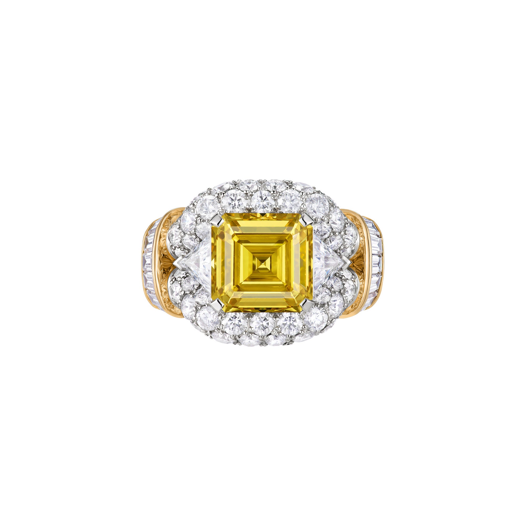 また、メゾンのハイジュエリー·コレクションより、プラチナ、イエローゴールド、ダイヤモンドをあしらったリング「オプティミズム」も着用しました。