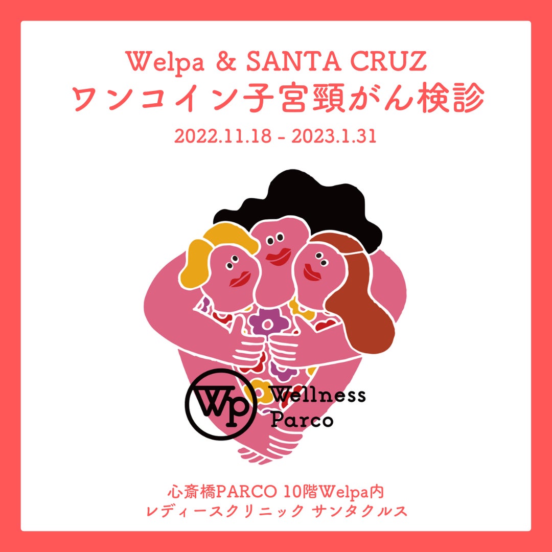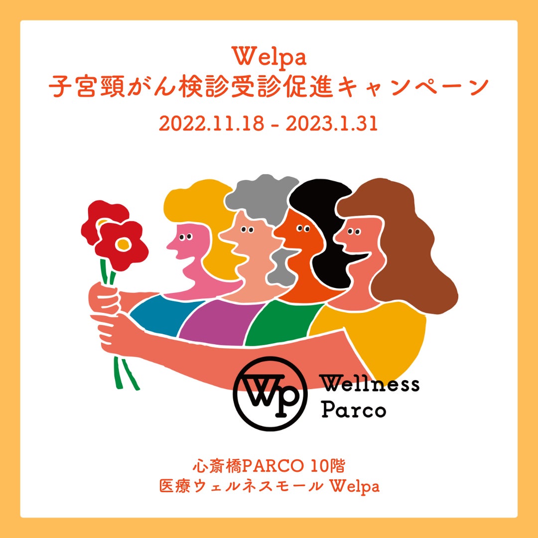 2022年11月、開業1周年を迎えるにあたり、 Welpaは子宮頸がん検診の受診促進に取り組んでまいります。「費用が高い」 「行くのが面倒」「行く必要を感じない」などの理由により敬遠されがちな子宮頸がん検診を少しでも気軽に受診いただくために、以下のサービス・イベントをご用意します。