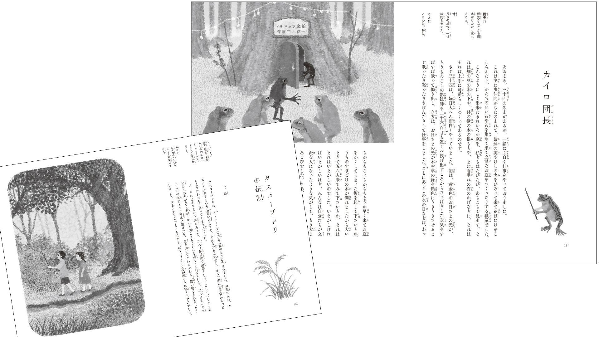 今回は、教科書にも掲載されてきた代表作の「グスコーブドリの伝記」をはじめ、故郷・岩手の伝統舞踊を特別な思いを込めて描いた童話「鹿踊りのはじまり」、東北にまつわる精霊・妖怪的存在を題材にした「ざしき童子のはなし」などの土着的な作品に加え、生前自費出版された唯一の心象スケッチ『春と修羅』より、「序」と「永訣の朝」の2編の詩を収録しました。宮沢賢治の哲学ともいえる珠玉の作品を、日下明さんのイマジネーション溢れる絵でお楽しみください。