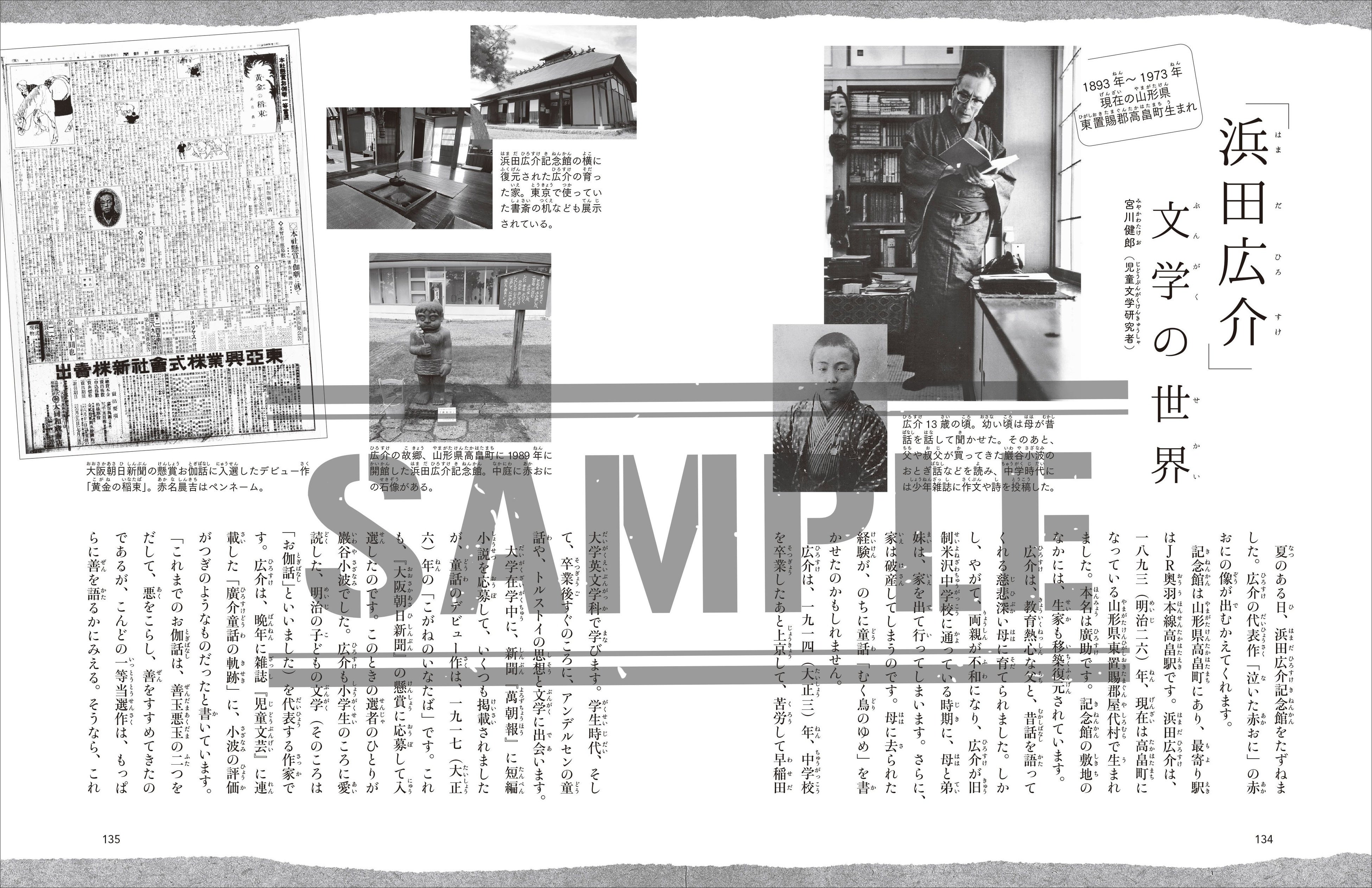 児童文学研究者・宮川健郎先生による各話の〔解説〕と、写真付きで紀行のように楽しめる〔「浜田広介」文学の世界〕を掲載しています。