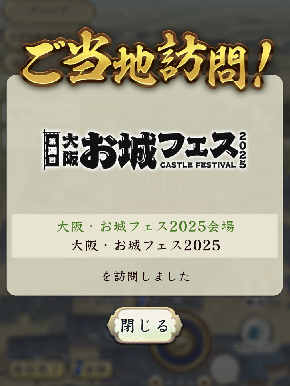 ご当地イベント「大阪・お城フェス2025」のパネルミッション完全達成画面をご提示ください。