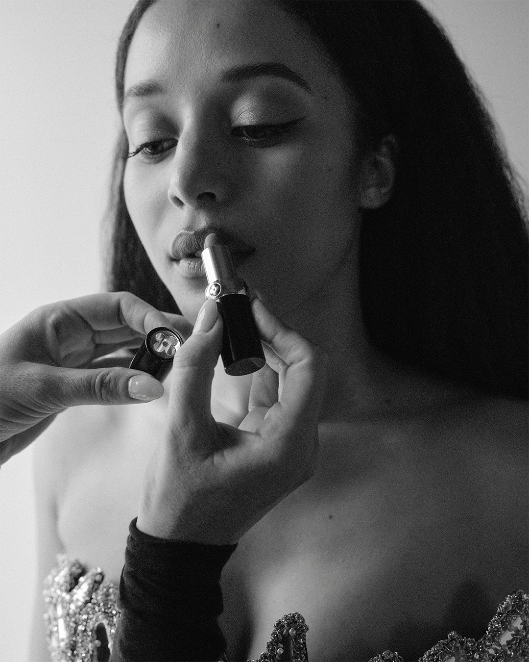 チェイス·インフィニティは、アイメイクには「LV オンブル 150 ベージュ メメント」と「LV オンブル 650 ウェイキング ドーン」を組み合わせ、リップメイクは「LV ルージュ 105 ヌード ネセセール」で仕上げたルックで輝きを放ちました。