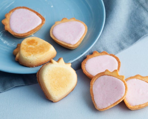いちご型のサクッとしたタルトにあまおういちごチョコ&ホワイトチョコの2層のクリームを入れ焼き上げました。コロコロとした見た目が可愛らしい苺のタルトクッキー。