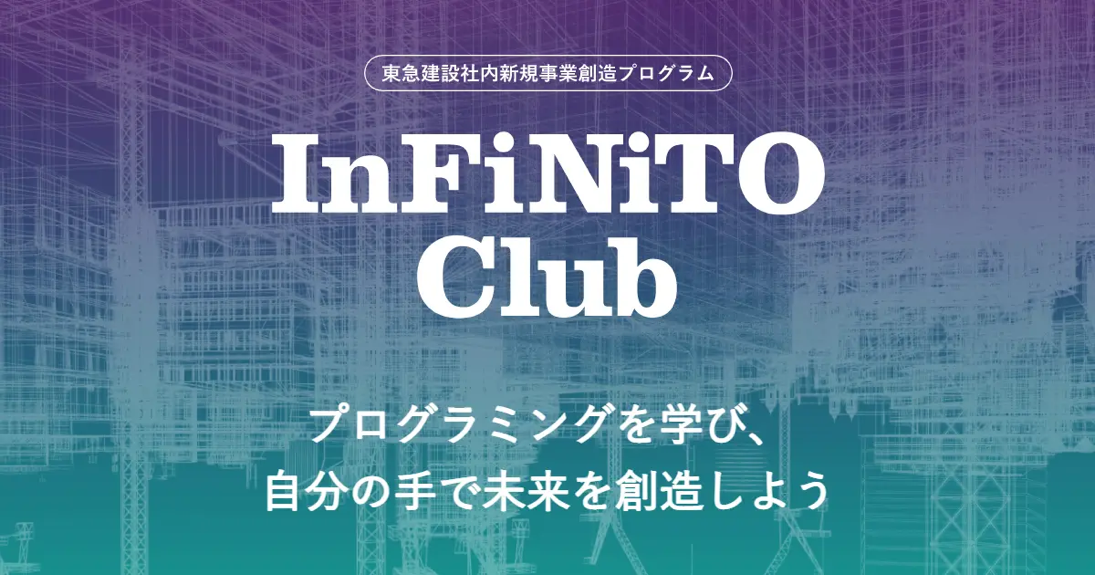 「新規事業人材の育成」「新規事業の創出」「社内の文化の変革」を目的とし、プログラミングを学ぶ東急建設社内向けプログラム「InFiNiTO Club(インフィニートクラブ)」を2022年9月に開講しました。