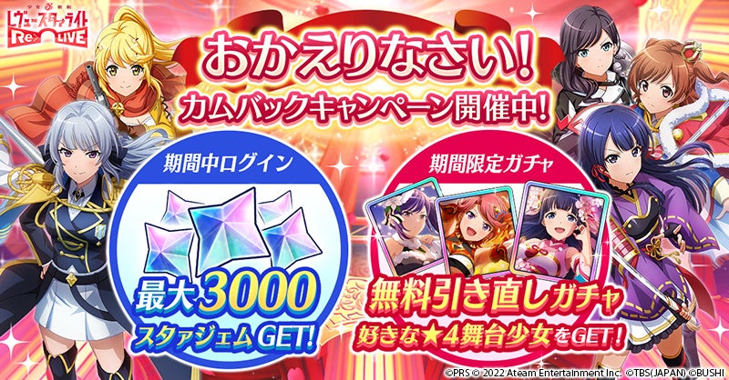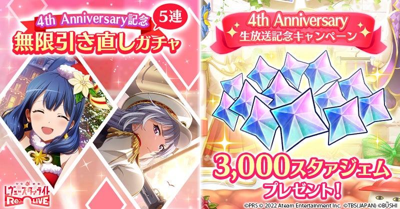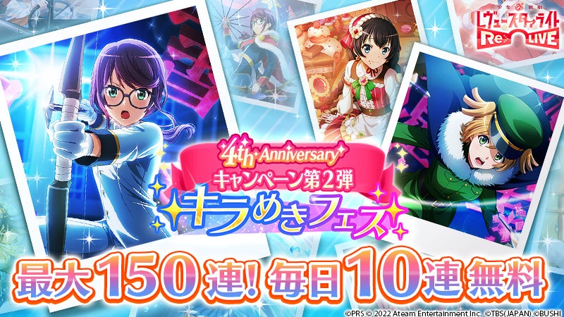 株式会社エイチームのグループ会社である株式会社エイチームエンターテインメント(本社:愛知県名古屋市、代表取締役社長:中内之公)と、株式会社ブシロード(本社:東京都中野区、代表取締役社長:木谷高明、以下ブシロード)および、株式会社TBSテレビ(東京都港区赤坂、代表取締役社長:佐々木卓、以下TBS)が共同開発したゲームアプリ『少女☆歌劇 レヴュースタァライト -Re LIVE-(スタリラ)』にて、サービス開始4周年を記念したキャンペーンやアップデートを実施します。