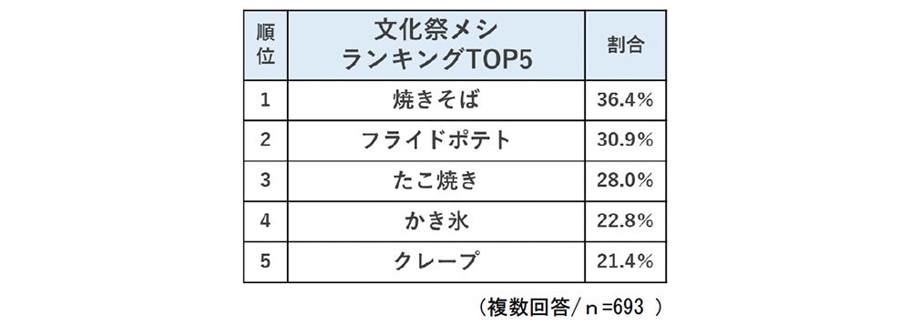 ■~「文化祭メシ」ランキングTOP5~ 多様なバリエーションでも上位はやはり王道がランクイン!
