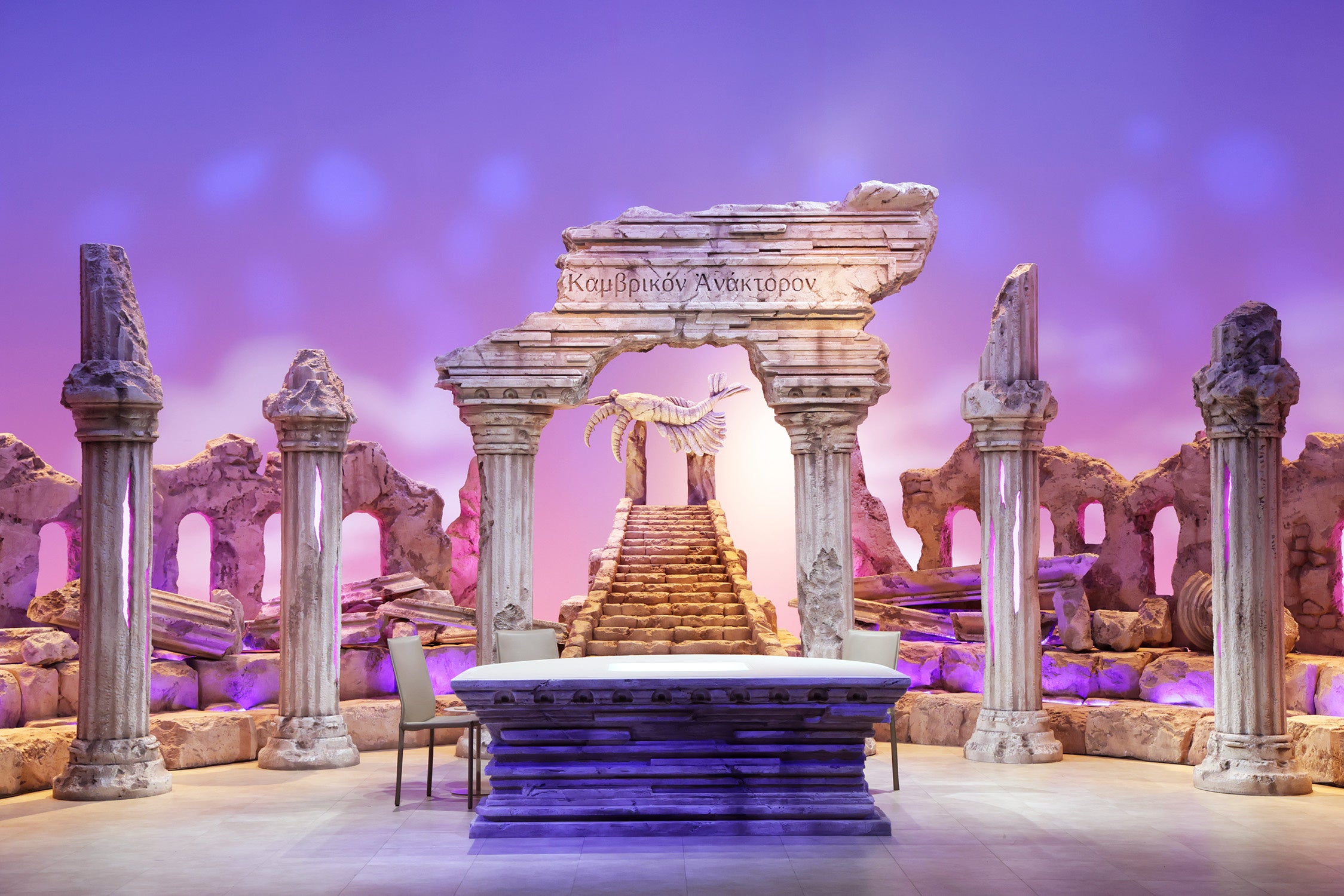 テレビ番組のトークセットという空間は、トークが親密に行われることに主題が置かれ、室内のセットであることが一般的だと思います。しかし、20年前の初代セットは「遺跡で対話する」というコンセプトで当時としては異例でした。今回、リニューアルされたセットも、閉ざされた室内の静けさではなく、時間を超え開かれて存在する空間を意識させる「遺跡の宮殿」となりました。新たなMCを迎え、ゲストと共に刺激的なトークが展開されることを期待しています。