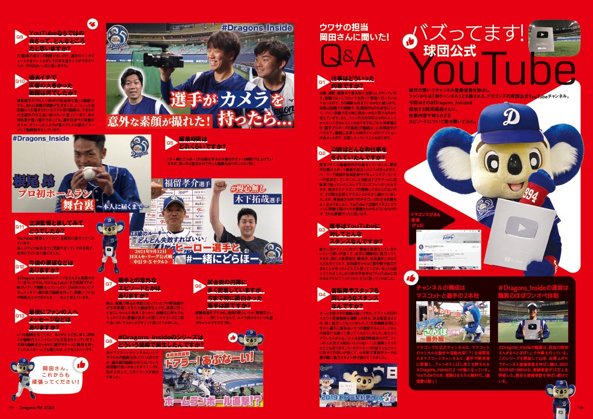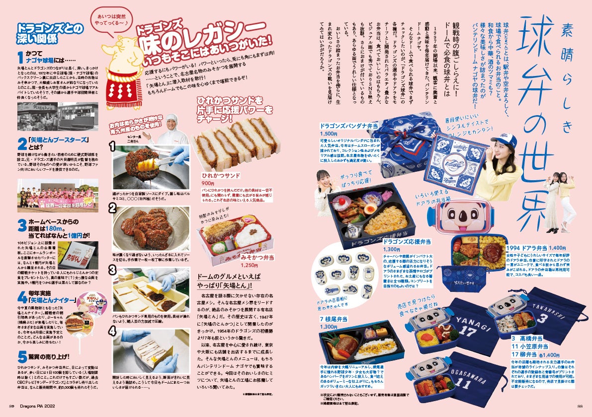 またスタジアムで、家で、ドラゴンズを楽しむための情報も充実。誕生間もない球団公式のYoutube、アプリから、スタジアム弁当、グッズショップ、チケットの買い方までを掲載。今年も中日ドラゴンズを一年間楽しむための、ホスピタリティ充実の誌面でお届けます!