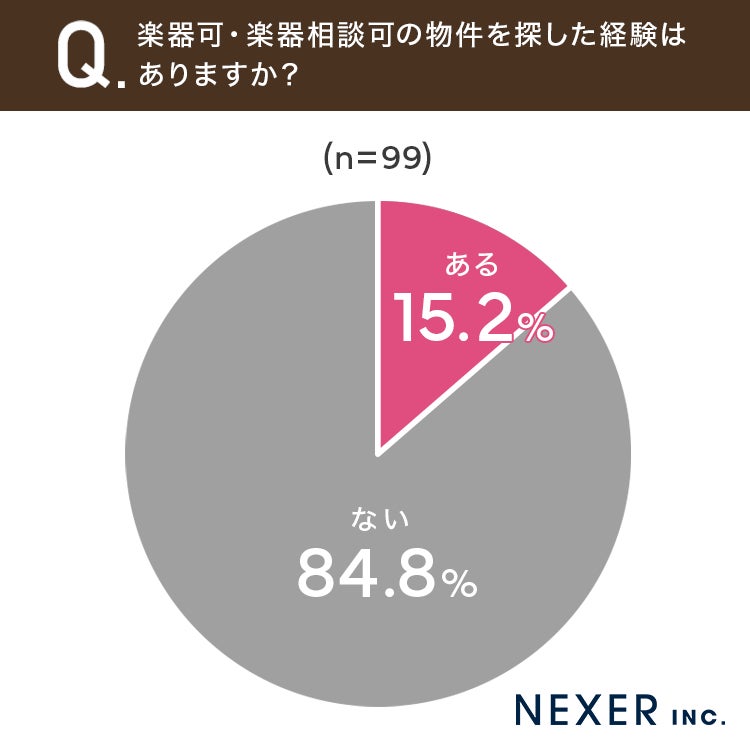 続いて、楽器可・楽器相談可の物件を探した経験があるかどうかを調査しました。
