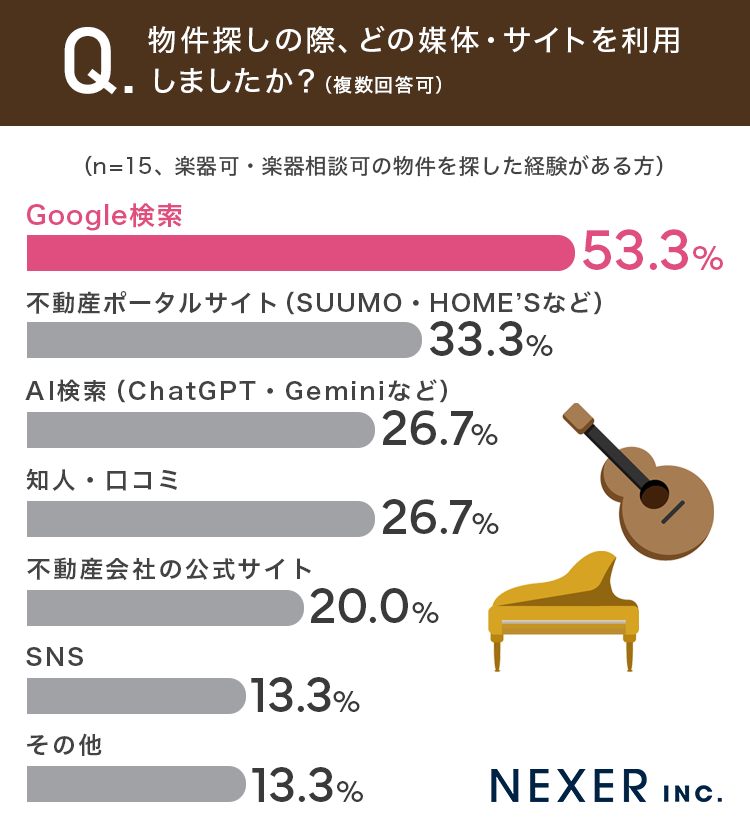 株式会社NEXER・楽器可賃貸の実態と理想の住まい選びに関する調査