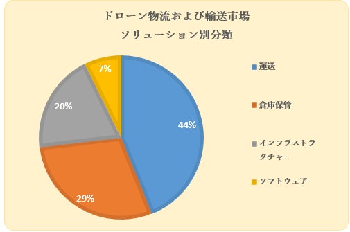 ソリューションに基づいて、市場は運送、倉庫保管、インフラストラクチャ、およびソフトウェアに分割されます。 海運業界では、エンドユーザーへの商品の配送サービスにドローンが広く使用されています。 ドローンによる配送サービスは、効率的かつ高速です。