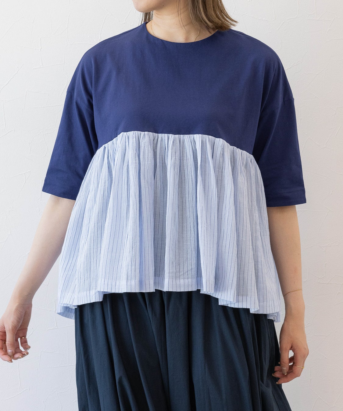 今回、生活を豊かにするアイテムを提案しているmumokutekiの「いきるをつくる」というブランドメッセージに共感し、コラボレーションにいたりました。コラボレーションアイテムは、天然素材や美しいカラーリングを軸に異素材を使用したTシャツや、ふわりと丸みのあるバルーンシルエットパンツなど遊び心をひとさじ入れた新しいナチュラルスタイリングを提案します。