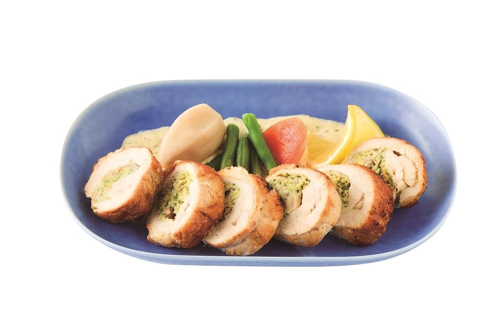 阿波尾鶏の胸肉に香草とバターを詰めたファルシー。べっぴんレモンを効かせたバターソースが加わって、すっきりとした味わいです。