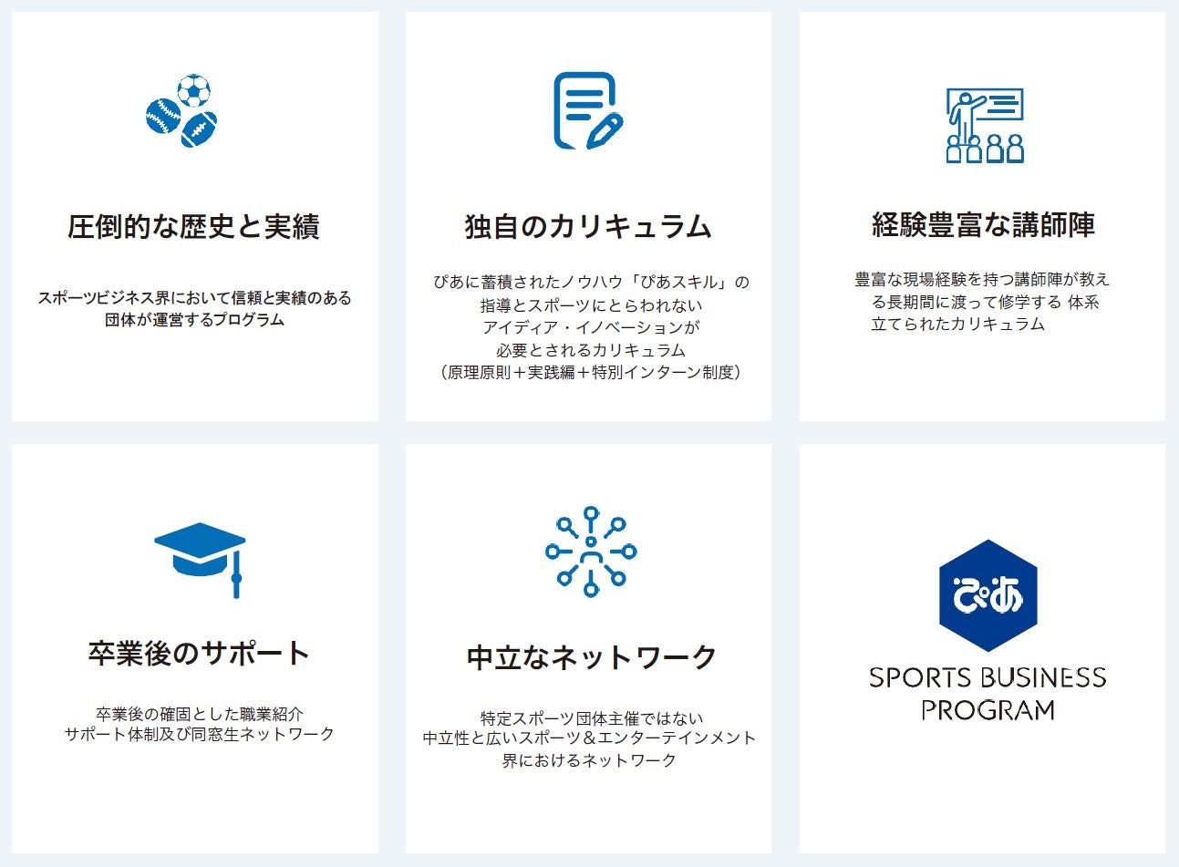 - ぴあスポーツビジネスプログラムの特徴