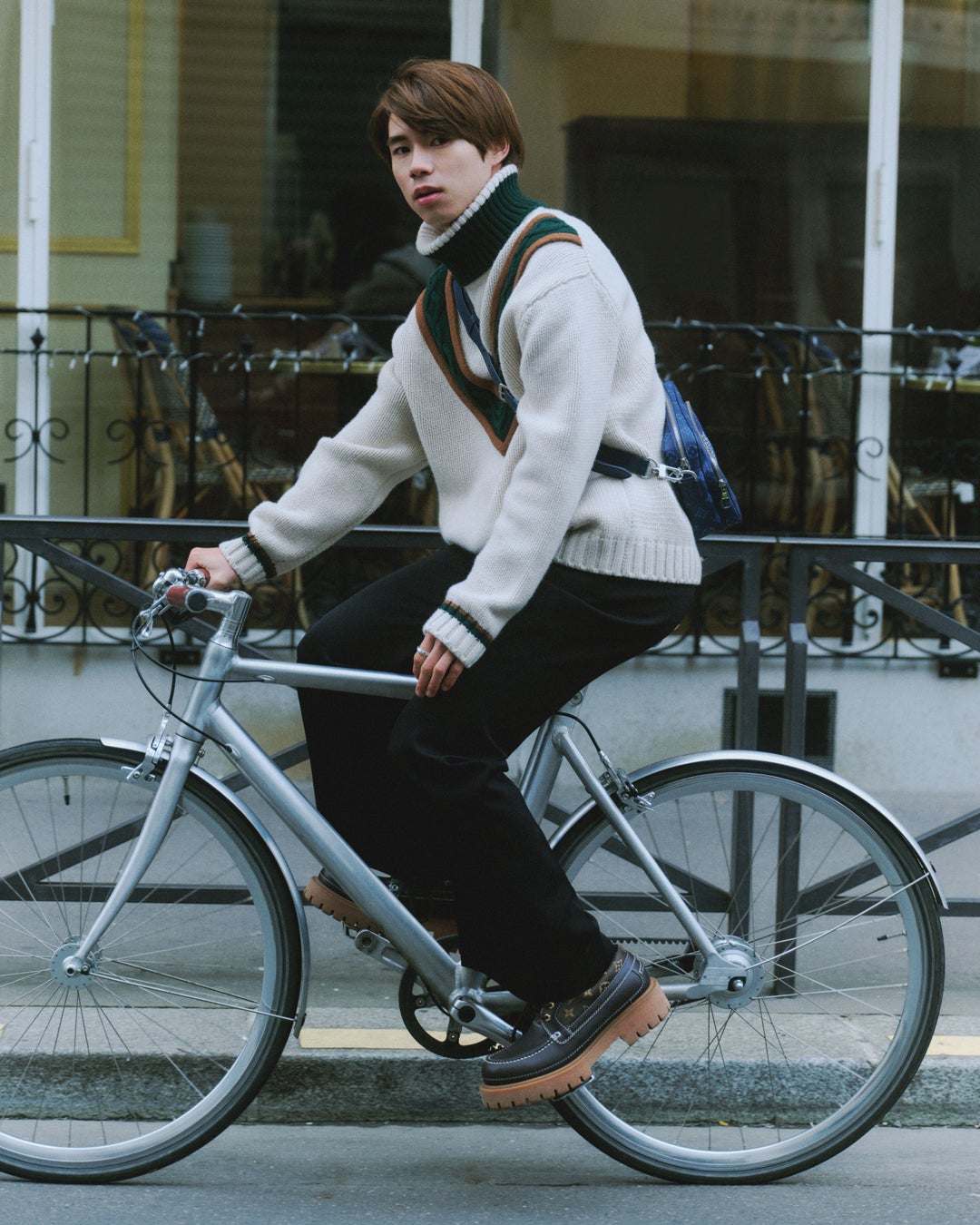 「1月にアンバサダー就任して以来初めてのショーに参加できて嬉しいです。会場の中央に配置されたお部屋に、まず驚きました。ダンディで、早く着てみたいアイテムもたくさんありました。ファレルのショーは、いつも思いもよらない刺激があり、僕もスケートボーダーとしてたくさんのヒントを得ました。」とコメントしました。
