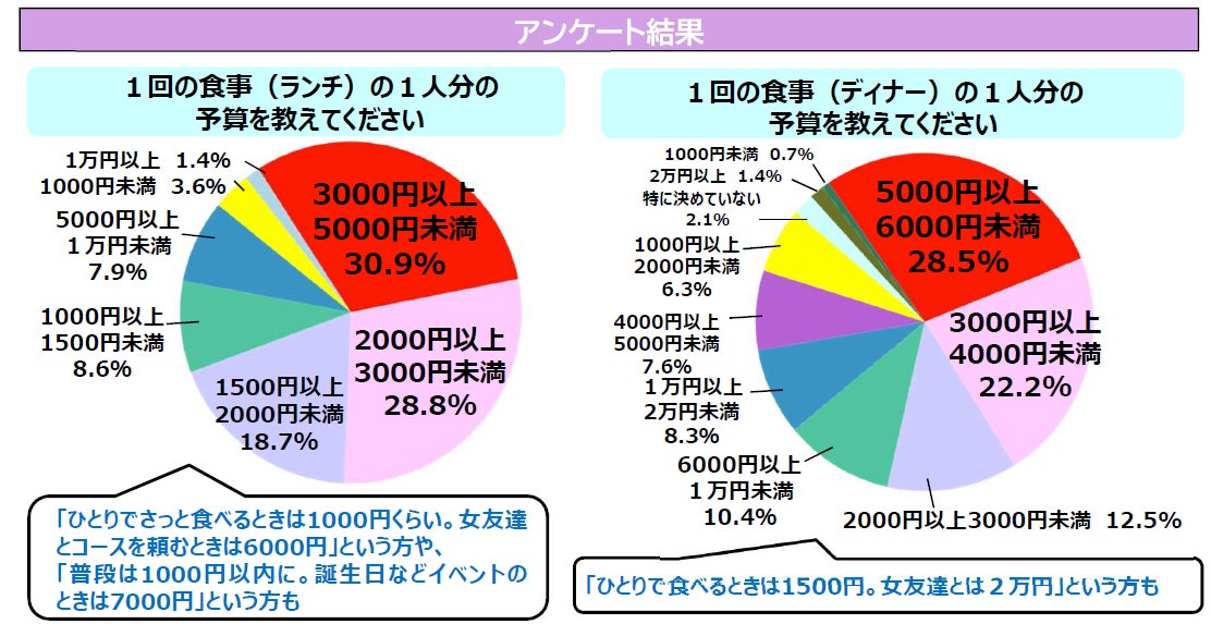 ★ランチの予算は1人あたり3千~5千円、ディナーは5千~6千円が最も多い結果に