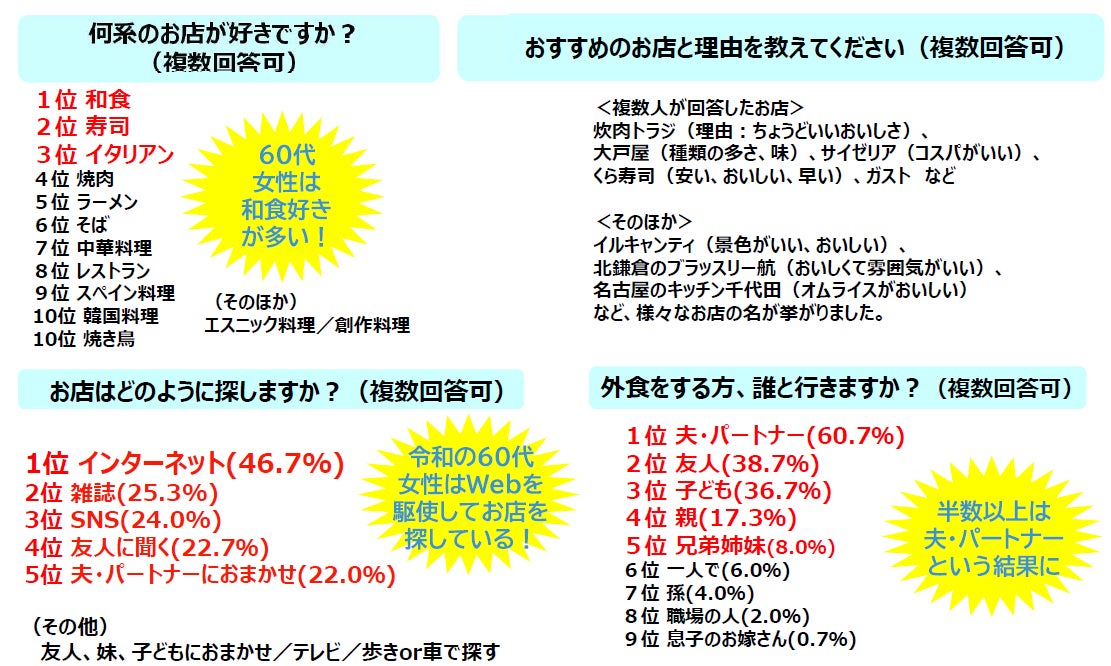 60代女性:1回のランチ価格「1番多かったのは3000~5000円」! お店探しは「ネットを使って自分で」46.7%