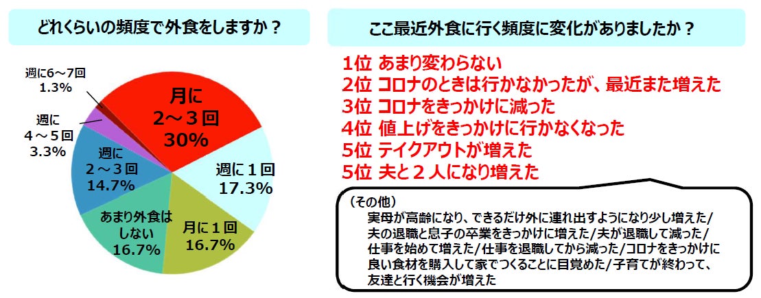 ★60代女性の8割近くが外食好き。外食の頻度は月2~3回の人が多い