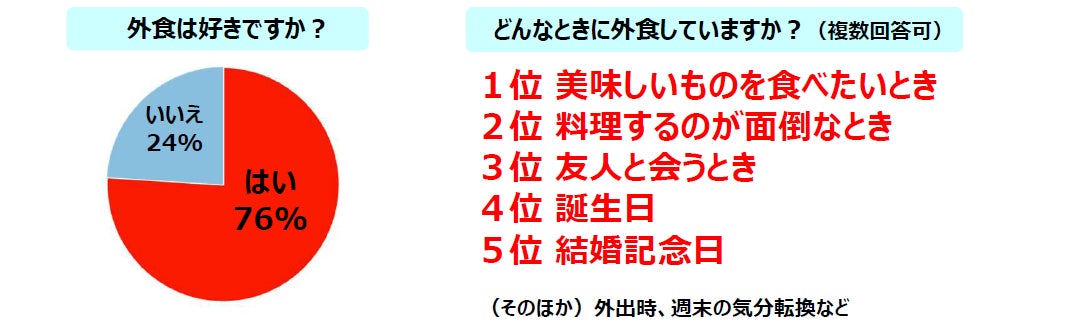 アンケートによると、約76%の方が「外食好き」と回答。頻度は、月に2~3回という人が最も多く、次いで週に1回、月に1回という順に。好きなお店の系統は、寿司も含めた和食が一番人気でした。外食するときの相手は夫・パートナーが1位でしたが、お店は自分で決めることが多く、みなさんインターネットや雑誌、SNSを駆使してお店選びをしていることが判明しました。ランチの予算は1人あたり3千~5千円、ディナーは5千~6千円が最も多く、女友達と行くときは予算がアップするという方もいらっしゃいました。