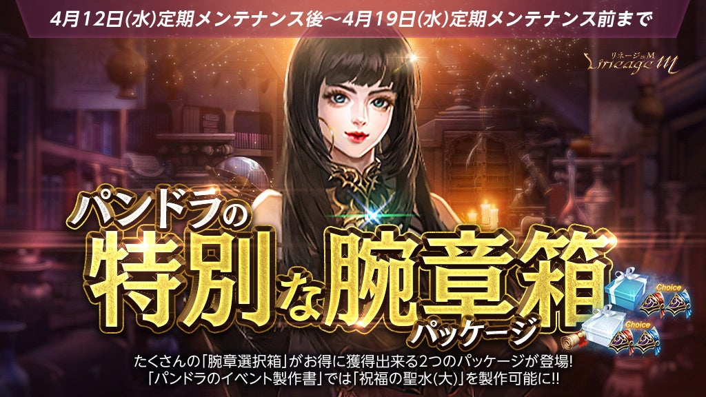 PCオンラインRPG「リネージュ」のモバイル版タイトル『Lineage M(以下、リネージュM)』のサービス、運営をしているエヌ・シー・ジャパン株式会社(東京都港区、代表取締役:金 澤憲(キム テクホン) 以下、エヌシージャパン)は、2023年4月12日(水)に、イベント「卯月の贈り物」の開催、「火竜の巣」フィールドリニューアルの実施、「パンドラの特別な腕章箱パッケージ」含む新たなパッケージの登場をお知らせします。