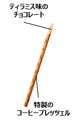 平成のヒットスイーツであるティラミスの味わいが楽しめるトッポです。特製のコーヒープレッツェルに、北海道産マスカルポーネチーズのコク深い味わいが楽しめるチョコレートをたっぷり閉じ込めました。