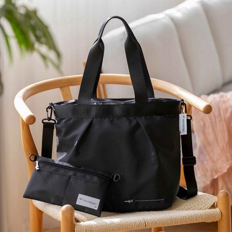 今回の特別アイテムはトートバッグと巾着バッグです。トートバッグはショルダーバッグやサコッシュにもなる3Way仕様。1泊2日程度の荷物が余裕で入る大きさで、5つのポケットが付いていて、旅はもちろんパソコンや資料、教材などを入れる普段使いのバッグとしても活躍します。ころんとしたシルエットがかわいい巾着バッグはショルダーバッグ、ハンドバッグとして使える2Way仕様。ポケットが前後左右に7つ付き、パスポートやスマホ、折りたたみ傘など、それぞれ取り出しやすい場所に収納できる万能バッグです。どちらにも取り外し可能なポーチが付いていて、旅だけでなく、普段のおでかけにも便利なアイテムです。