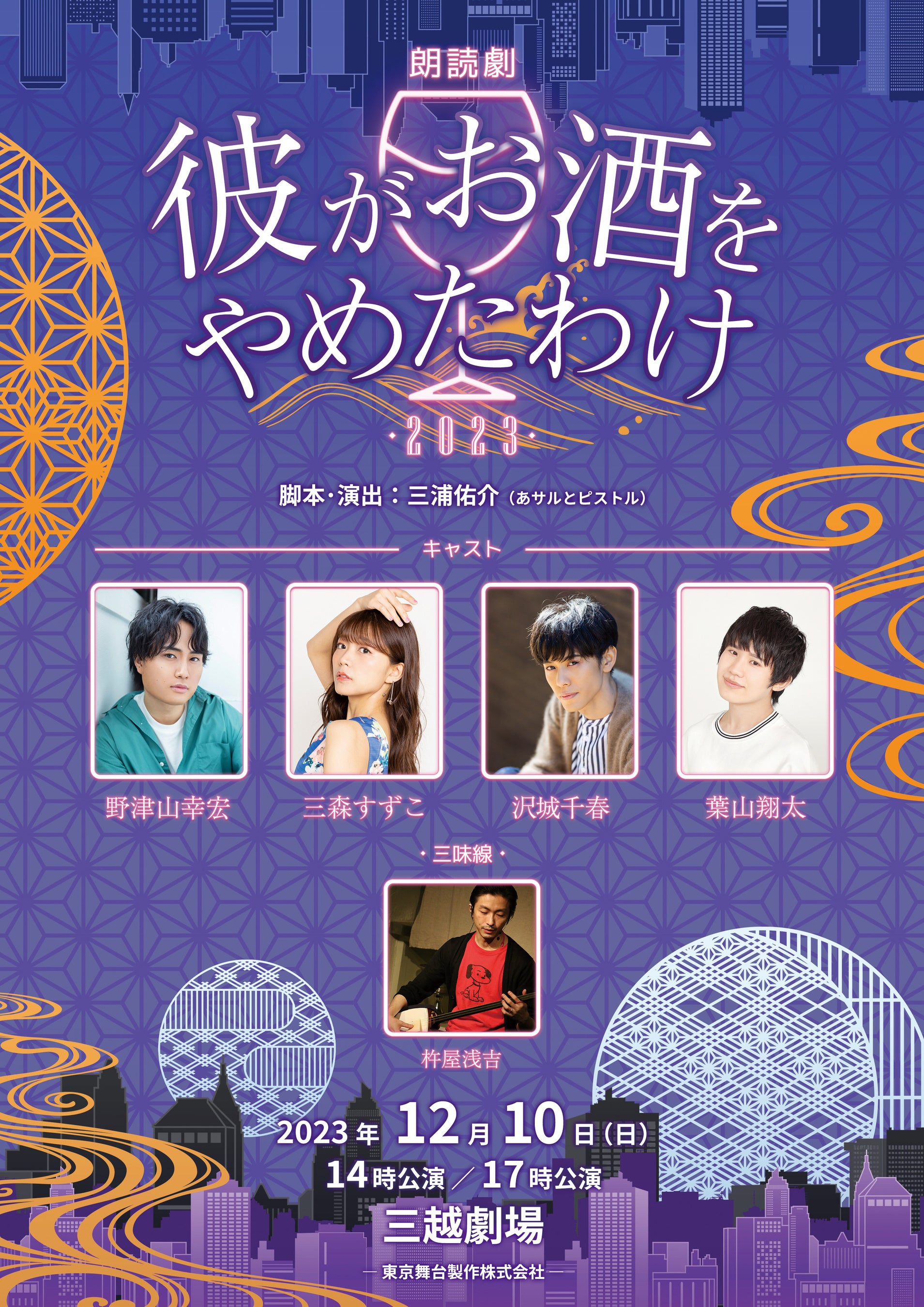 野津山幸宏・三森すずこ・沢城千春・葉山翔太の4人芝居 朗読劇『彼がお酒をやめたわけ2023』上演決定 カンフェティでチケット発売