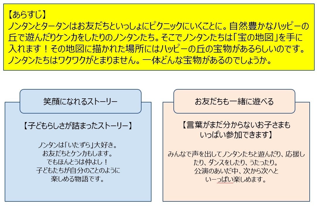 詳しくはノンタンのハッピーコンサートのホームページにて<感染予防対策公演のご案内>をご確認ください。