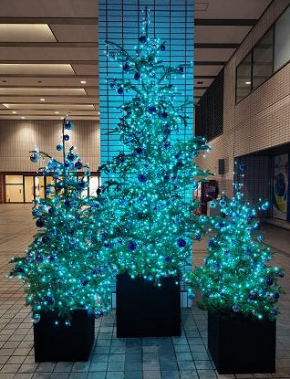 そごう横浜店2階のペデストリアンデッキ「はまテラス」では、横浜駅東口方面から グランモール公園を中心としたみなとみらいエリアで、横浜の冬を代表するイルミネーションとして 今年8回目の開催をむかえました。全長約1.5kmにも及ぶイルミネーションは、ブルーを基調としたLEDライトの鮮やかな光が冬の夜空を青く輝かせます。ぜひ、横浜の冬の夜を楽しみにいらしてください。