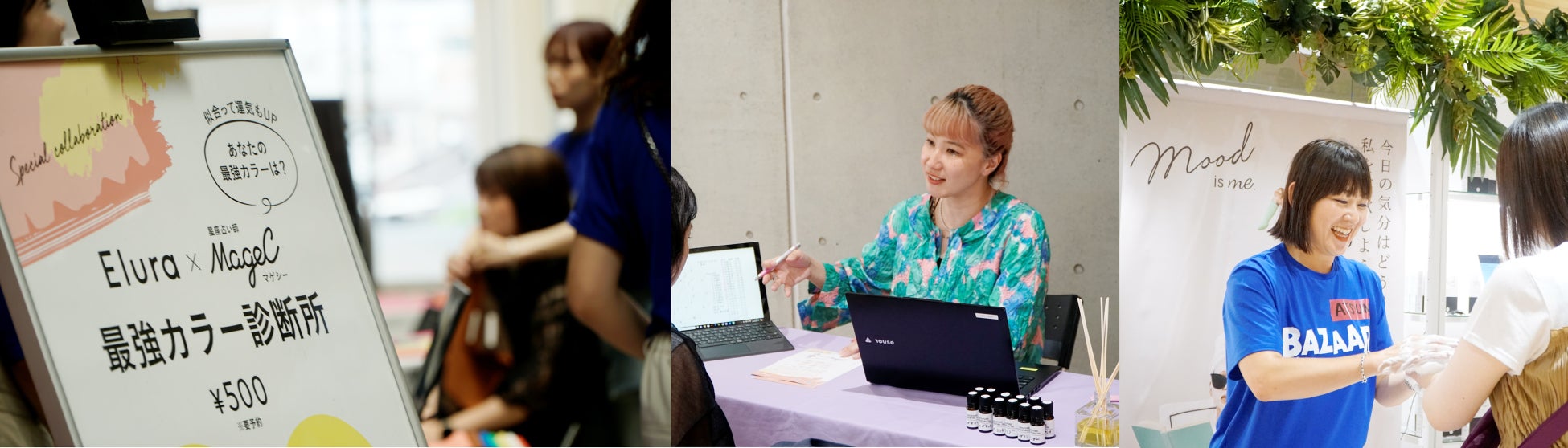“大人の悩みに効く服”Elura(エルーラ)と占星術師MageCがコラボした「パーソナルカラー&運気の上がる最強カラー診断」、ウェルネスブランドmood is me.(ムードイズミー)が提供する「美と健康のブース」など、水戸市内未出店のブランド・サービスを体験できるスペシャルブースを展開。