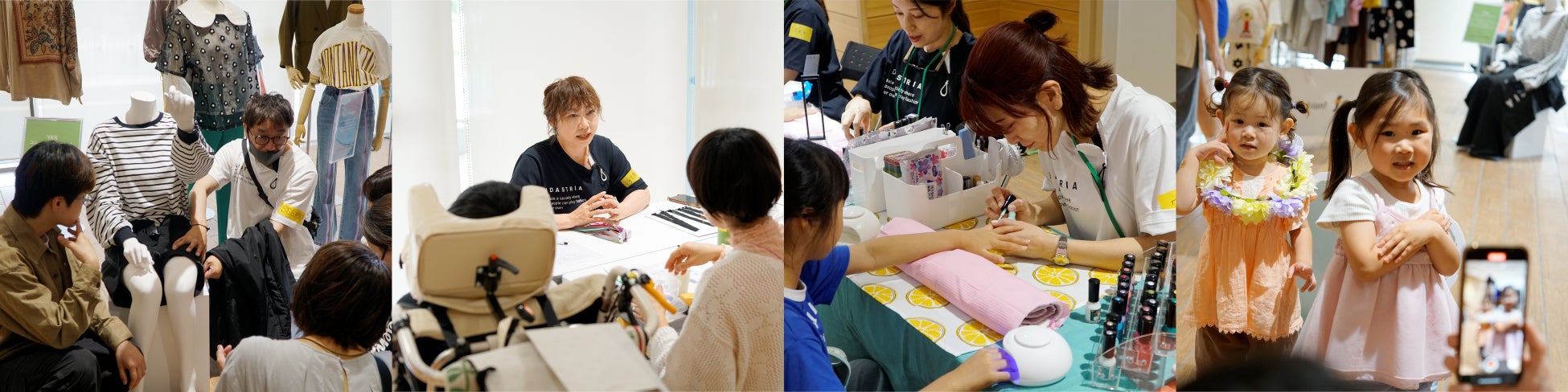 インクルーシブファッションプロジェクト「Play fashion! for ALL」は、障がいや持病があっても「だれでも着やすい・着たい服」の展示&受注会を行いました。障がい・持病の当事者はもちろん健常者にとっても、だれもが着やすい・着たいファッションについて、お客さまのリアルなご意見やご要望をお伺いし、今後の商品開発に活かしてまいります。また、関東を中心に福祉美容を広める活動をする「福美会」ご協力のもと、お子さまや高齢者も楽しめる水性ネイル「福祉ネイル」体験を開催しました。