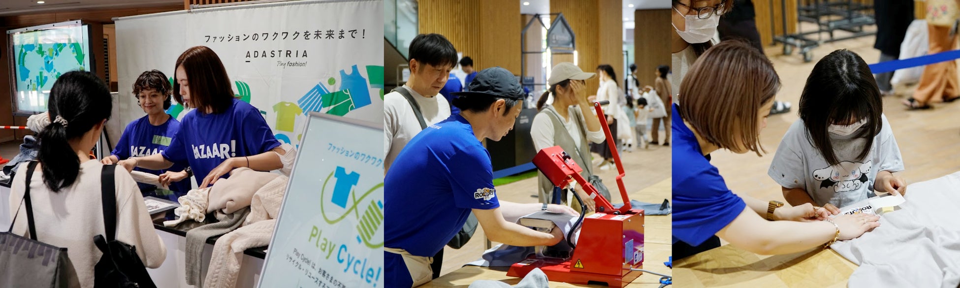 さらに、会場内では衣料品を回収しリユース・リサイクルする「Play Cycle!」の回収ブースを設置し、2日間で約460kgの衣料品をお客さまから回収いたしました。また、ガレージセール内で商品をご購入いただいたお客さまを対象に、ご購入アイテムをより長く、愛着をもって着ていただくためのアップサイクル体験として、限定デザインの圧着プリントサービスを無料で実施いたしました。ご家庭内の不要な衣料品をお持ちいただき、ガレージセールで新たにお気に入りの一着を見つける、というサステナブルなショッピング体験を多くのお客さまにお楽しみいただきました。