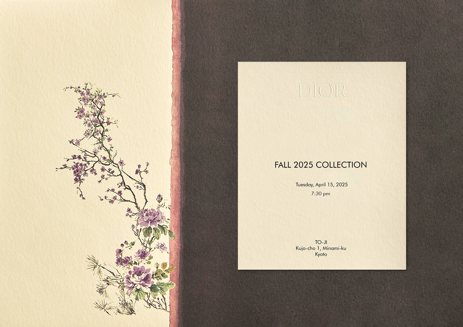 日本との強い絆を称え、メゾン ディオールはマリア・グラツィア・キウリによる 2025 年フォール コレクションのファッションショーを行う場所として京都を選びました。創設者クリスチャン・ディオールとその後継者たちが培ってきた情熱を、この素晴らしい国へのオマージュとして捧げ、2025 年 4 月 15 日より19:30に東寺の庭園で開催されるショーをライブ配信いたします。公式オンラインブティックおよび公式Youtubeなど、各種ソーシャルメディアからご覧ください。
