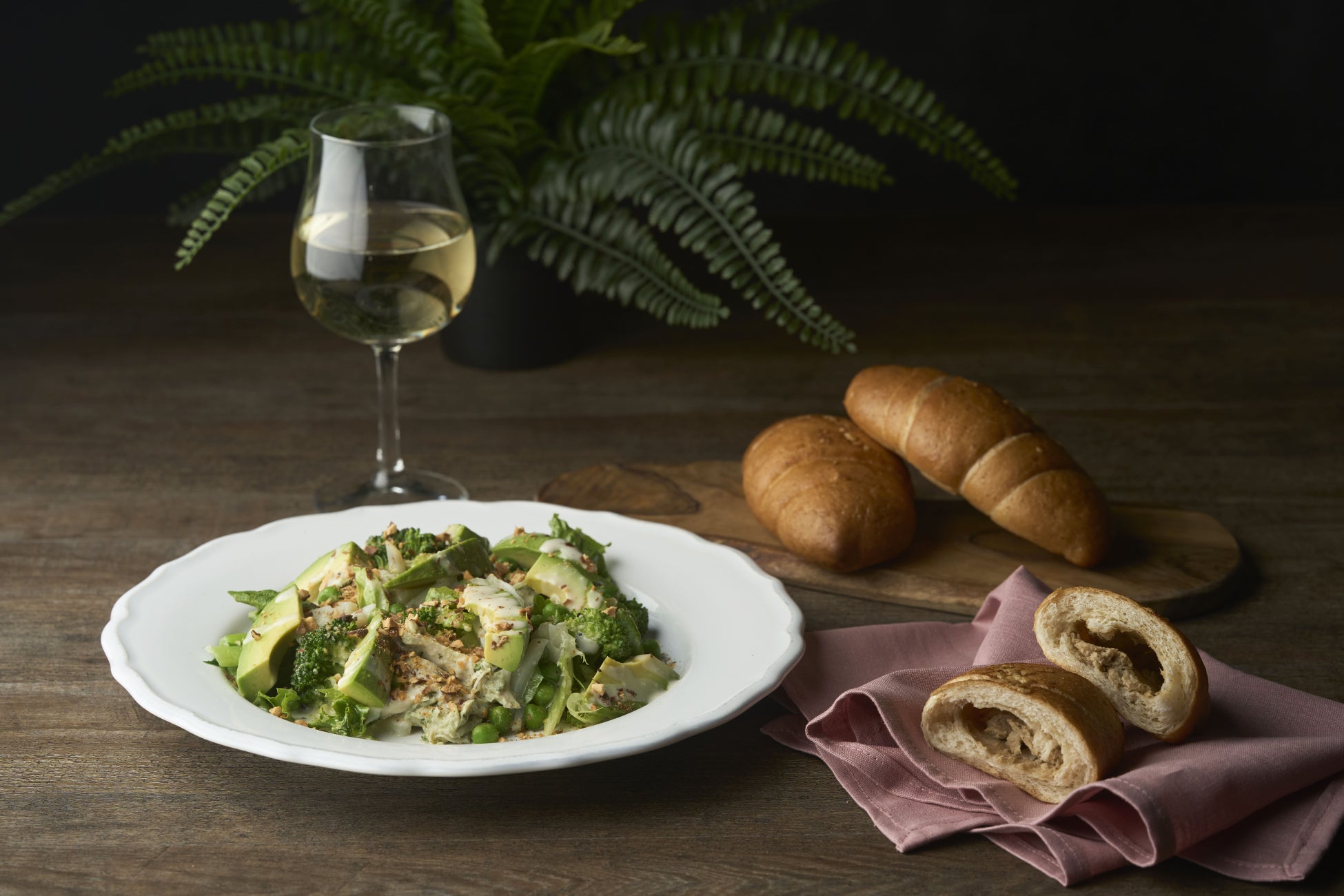 それだけでもしっかり「夜パン」してくれるツナロールには熟成パルミジャーノ・レッジャーノソースがからむサラダでよりリッチに。
