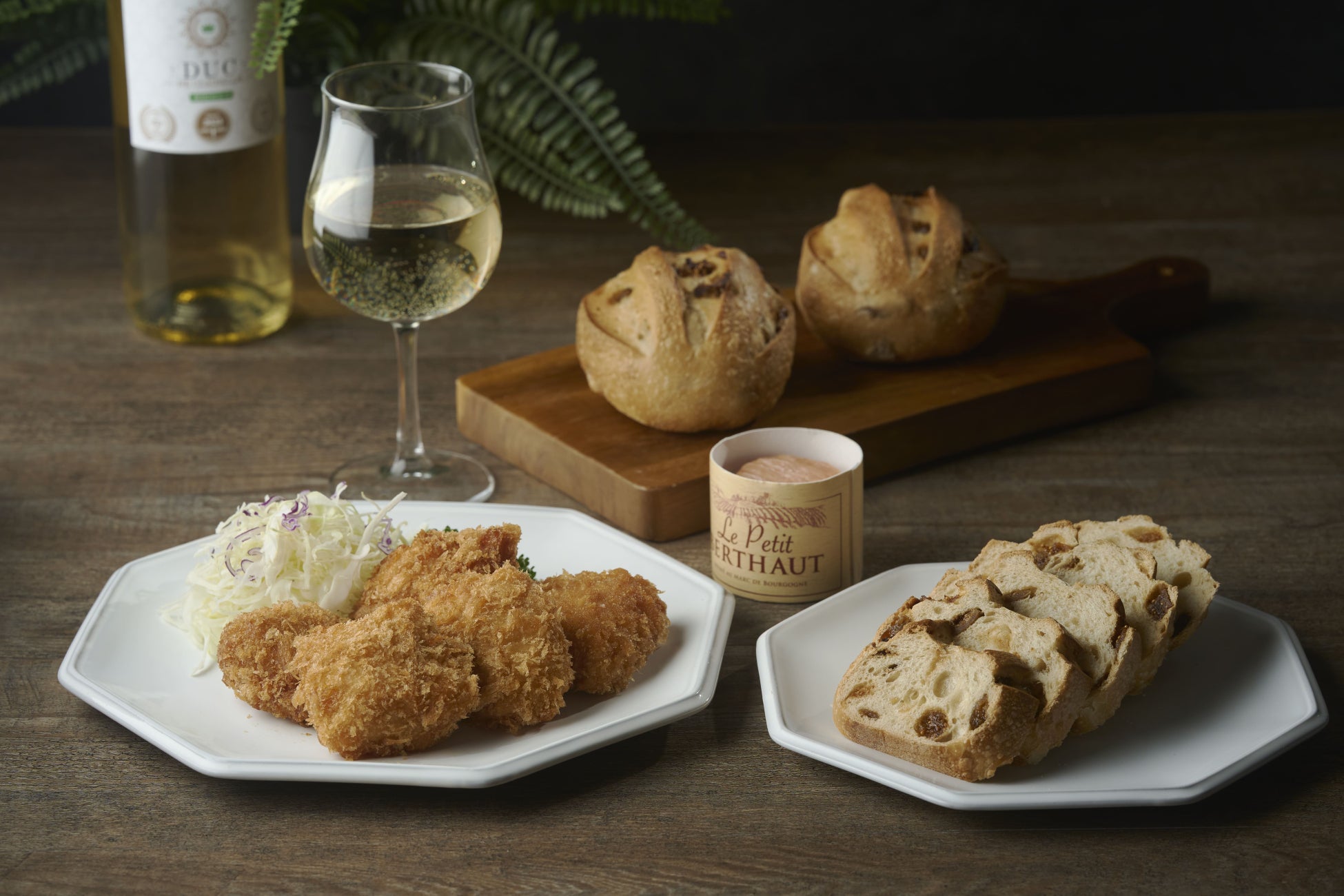 「夜パン」にぴったり、ドライフルーツのパンにはふわふわの激押しチキンカツを。ウオッシュチーズも添えれば、バランス完璧です。赤ワインを合わせて。