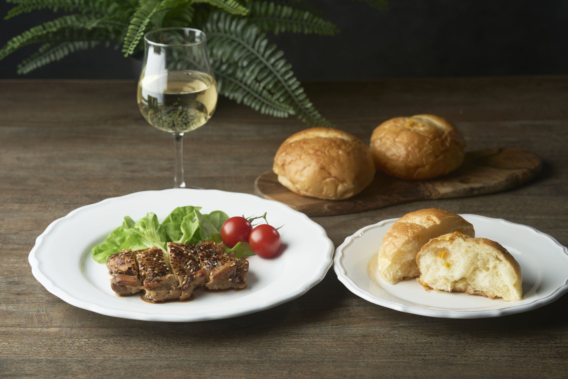 スイートコーン入り食事パンには、照焼きチキンを合わせて、和洋折衷感でベストマッチ。