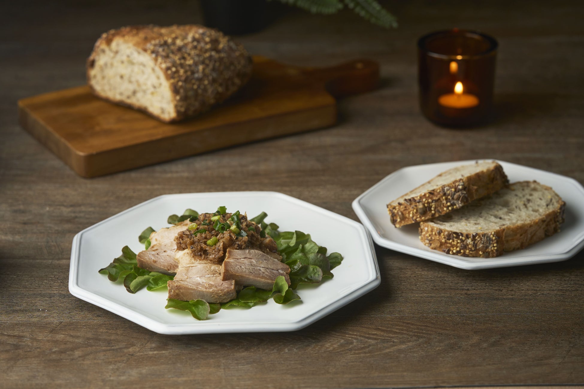 シードとシリアルがはいった素朴な食事パン「パン・グレーネ」には豚のあぶり焼きなど和テイストのお惣菜をあえて合わせてみて。