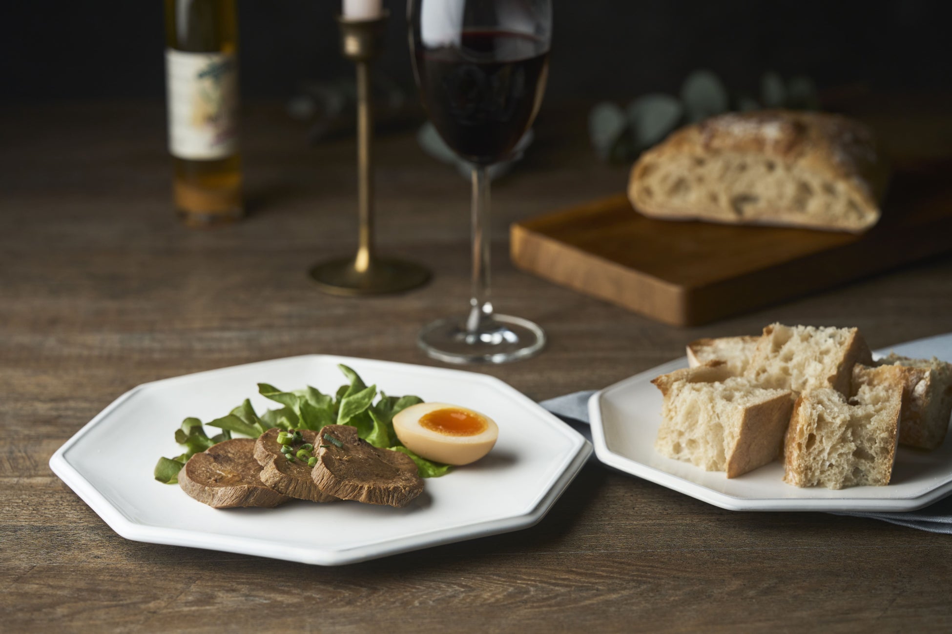 もっちりとした食感の多過水パン「滴」には、やわらかさの中にもタンらしい主張がある「やわらか牛たん」などシチュー系がよく合います。ゆで卵とも相性がぴったり!