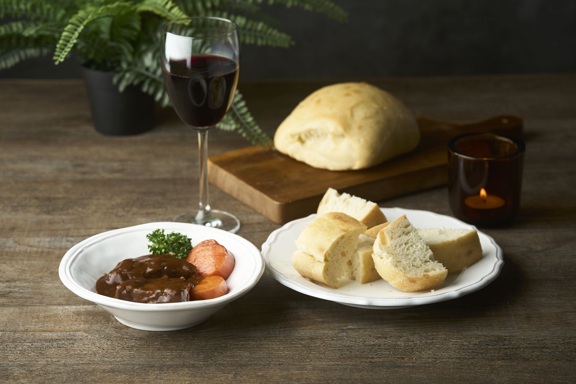 夜パンの王道、ソースと合わせてその実力を発揮するチャバタには、赤ワインをたっぷり使って3日間かけて仕上げる深みのあるソースのビーフシチューを。