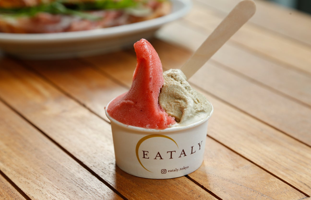 新館地下1階でも人気のイータリーのおすすめスイーツはジェラート6種類のフレーバーから選ぶことができます。※フレーバーの種類・・・ 「バニラ」「フィオル・ディ・ラッテ」 「ピスタチオ」「ストラッチャテッラ」 「あまおう」「ソルティレモン」