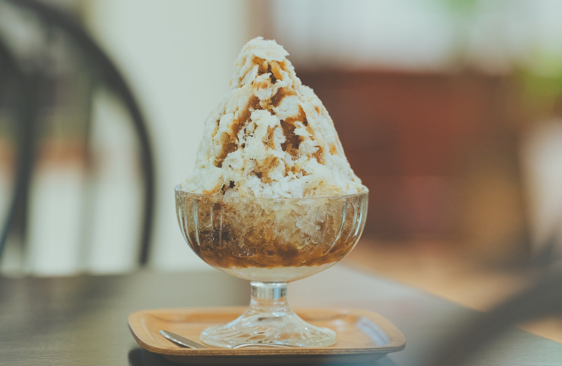 シロップはコロンビアをベースにマンデリンも加えた、自慢のフレンチブレンドを濃いめに落とし、砂糖を加えて煮詰めて作られている。ザクザクっとした氷に、コーヒーシロップと練乳がたっぷり入っており食べ進めるとソフトクリームも入っている食べ応えのあるかき氷。通年取り扱いのあるコーヒーフレーバーのかき氷はコーヒー好きからも人気の一品。
