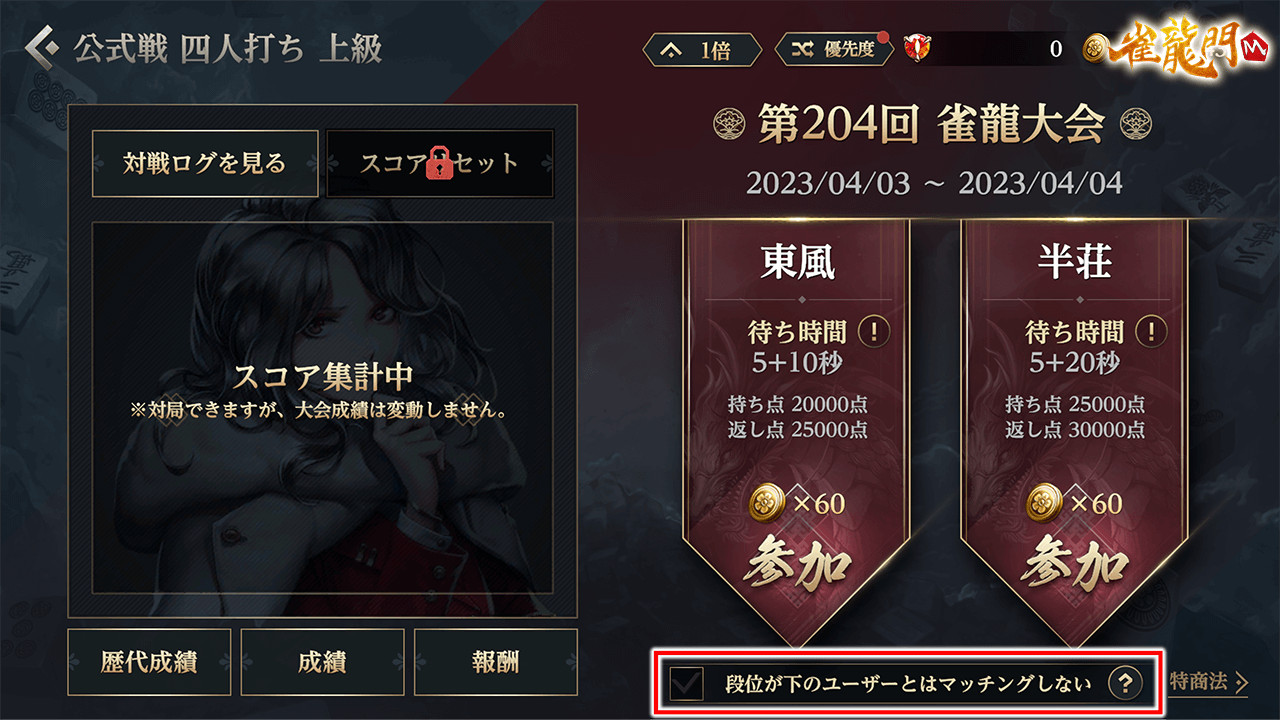 公式戦のすべてのモードで「中級卓」を廃止し、「通常卓」と「上級卓」の2つの卓に変更しました。