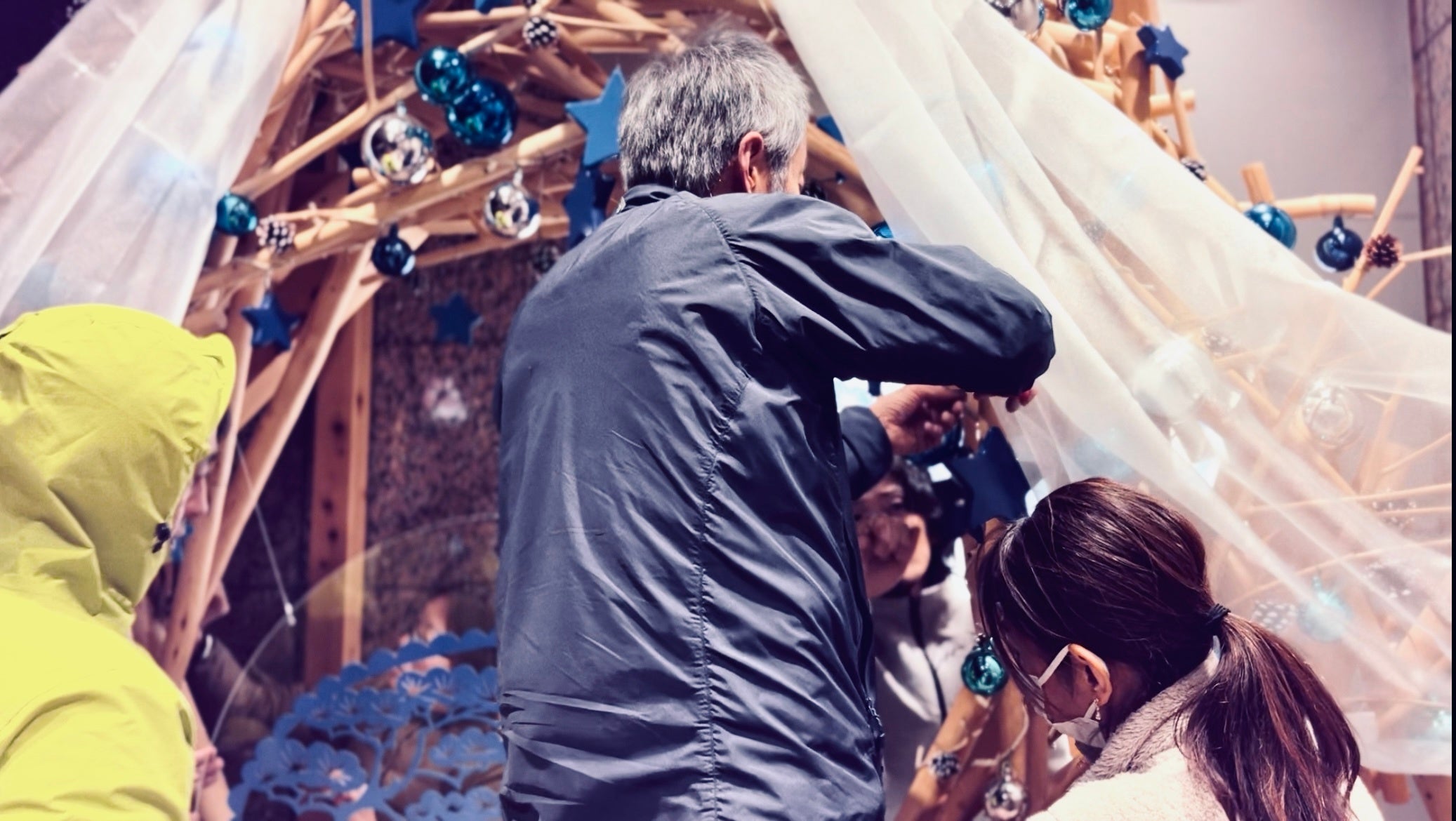 京都府の木である杉山杉の魅力を届けることで、地域振興と適切な森林資源の利用に貢献したい。二つの思いを持ったツリーは、地域の皆様のご協力のおかげで実現しました。ホリデーシーズンが終わったあと、 このツリーを違う形に生まれ変わらせることができたら、新たな価値が生み出せたら、そんなことにも思いを馳せています。